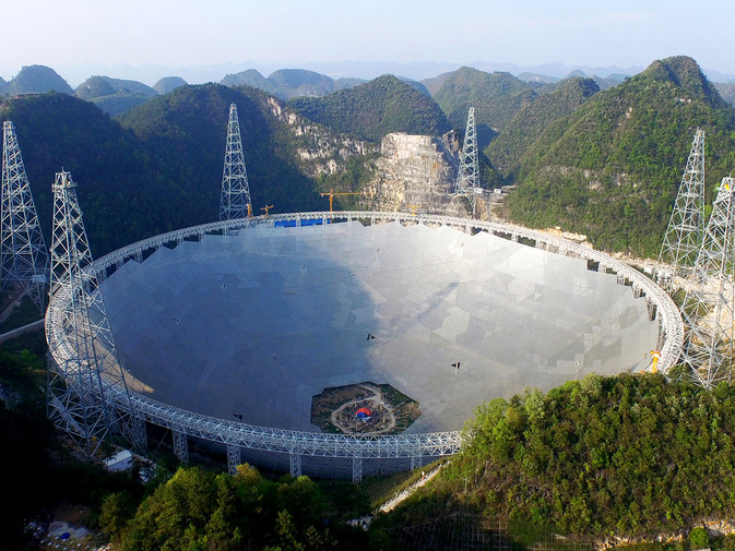 In a country where bigger often equates to better, a truly massive science project is about to go online in Guizhou. Approximately 170 kilometers southeast of the provincial capital Guiyang, within a Karst depression in Pingtang County (平塘县), construction is nearing completion on the world’s largest radio telescope. At 500 meters in diameter, the telescope, which has been dubbed the ‘Five-hundred-meter Aperture Spherical Telescope’, or FAST for short, dwarfs all predecessors. In Puerto Rico, the 53 year-old Aceribo Telescope comes in next at 305 meters.